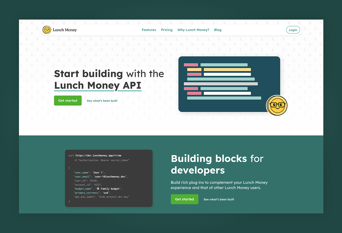 Designing a dedicated developer API landing page for a SaaS product