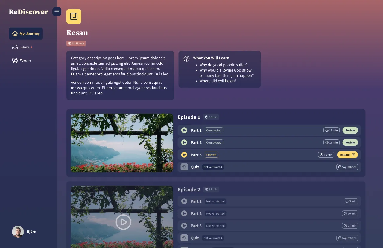 Research and design the UI of a Bible e-learning platform