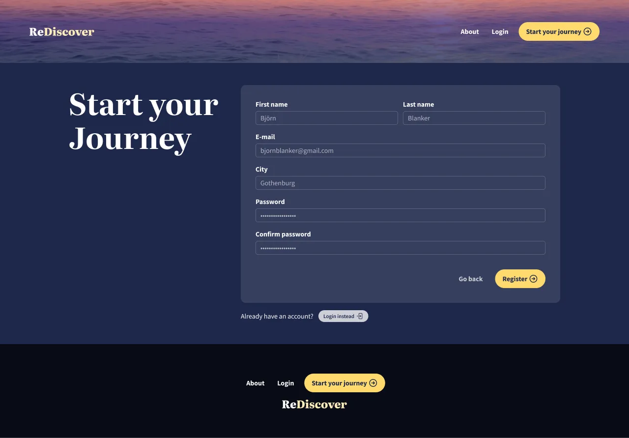 Because the original Rediscover logo and branding ideas felt a bit dated, we got permission to propose a whole new brand styleguide. You can see my brand ideation at the beginning of the Figma screen recording above.